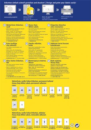 Minőség a címkeszakértőtől: az Avery Zweckform időjárásálló címkék lézernyomtatókhoz különösen strapabíróak, kültéri használatra is.